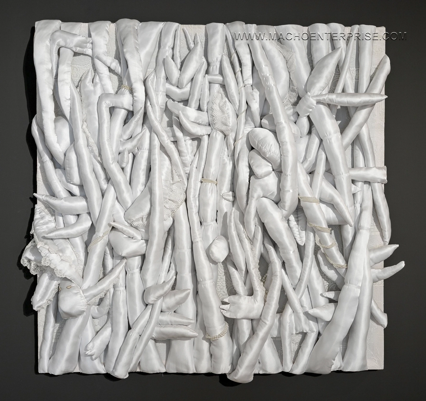 soft sculpture, satin and beads, 150x150x30cm.